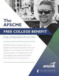 AFSCME and Eastern Gateway Community College are offering the chance to earn an online degree from an accredited school with no out-of-pocket expense. A college degree can be your pathway to new opportunities, greater responsibilities and more earning power.